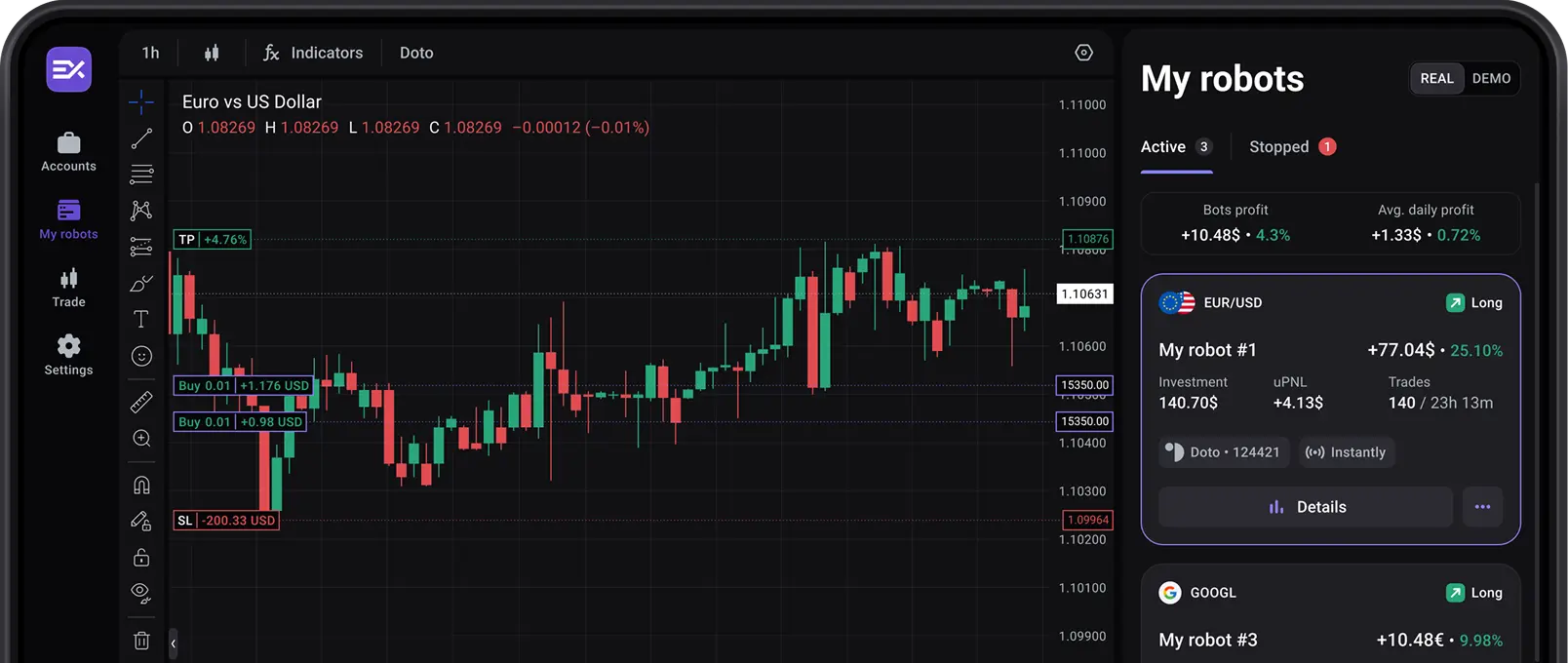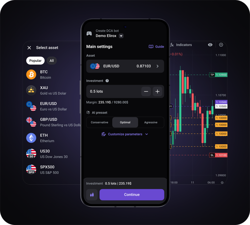 Elirox lets you launch automated forex trading strategies without writing a single line of code. Traders of any level can get started with bots using a simple setup and intuitive tools.