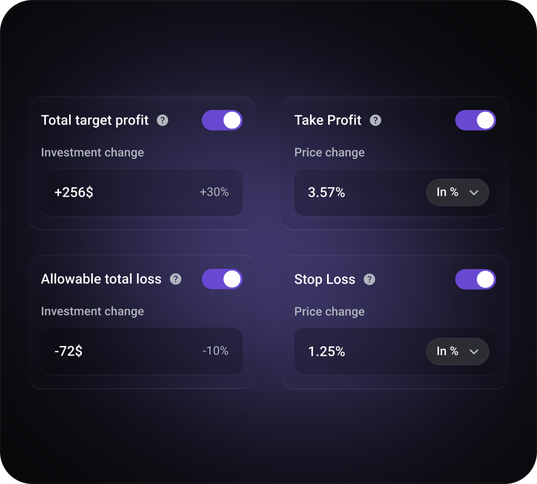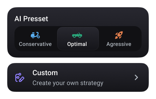 AI Presets help you set up an automated forex trading bot in minutes by choosing a risk level.