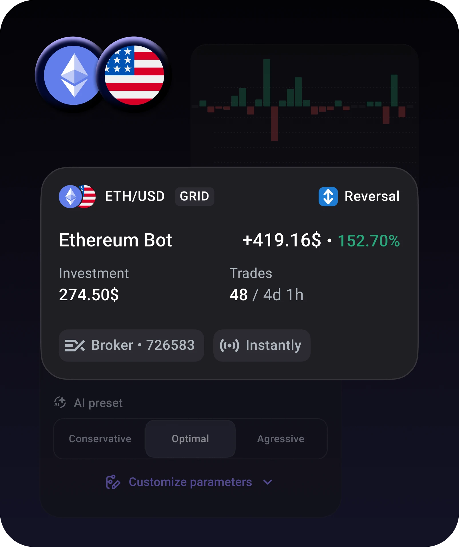 The ETH/USD pair is one of the most volatile and liquid in the crypto market — which makes it well-suited for algorithmic trading but difficult to manage manually. The Elirox bot reacts to price changes in real time, never makes emotion-driven decisions, and runs continuously. Compared to manual trading, it's faster, more consistent, and always available.