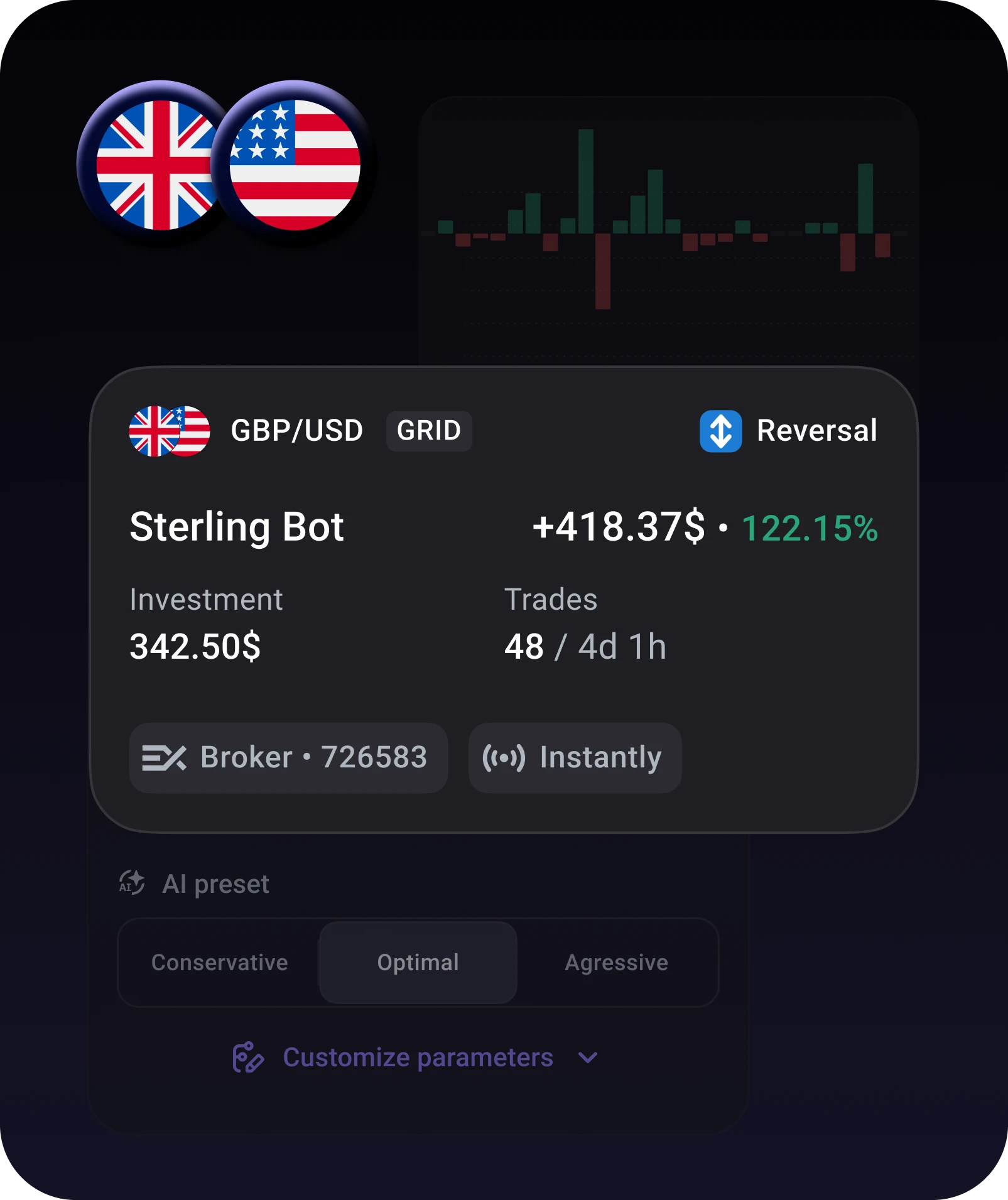 A GBP/USD trading bot is automated software that buys and sells the GBP/USD currency pair on your behalf. It uses AI to analyze the live rate, identify trading opportunities, and execute orders — without you needing to watch the screen. The Elirox bot handles this pair effectively, adapting to its volatility patterns and price behavior.
