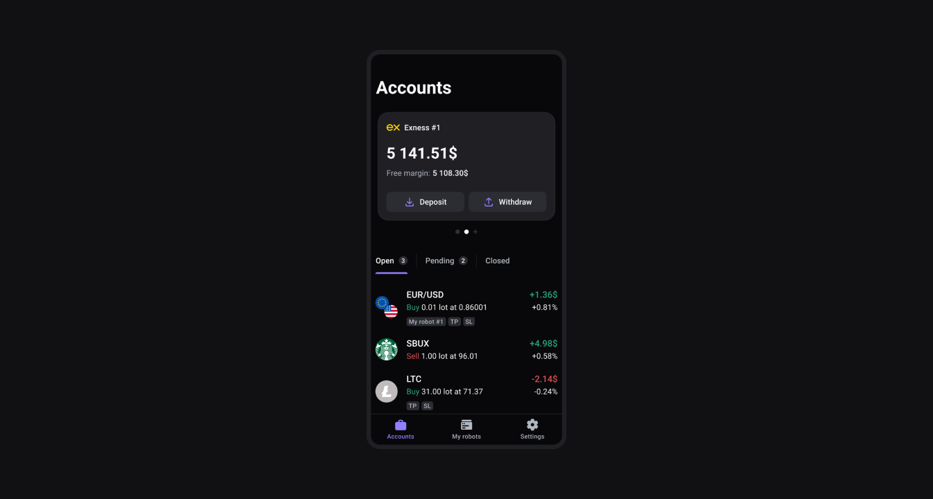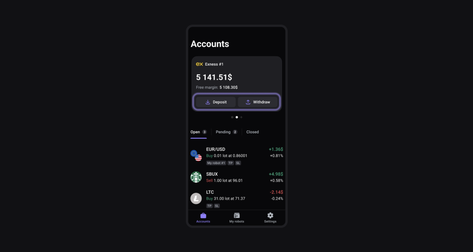 While you may see Deposit and Withdraw buttons inside the Elirox app, clicking them will simply redirect you to your broker’s website. There, you can complete your trading deposit or withdrawal securely through the broker’s platform.