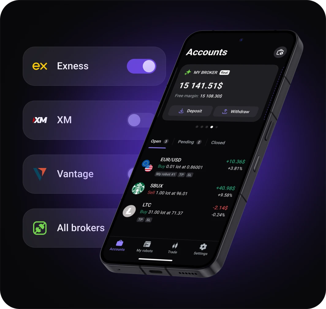 Connect both demo and live Exness accounts and manage them from a single interface with real-time sync. Test strategies safely, then move to live trading without changing your setup.