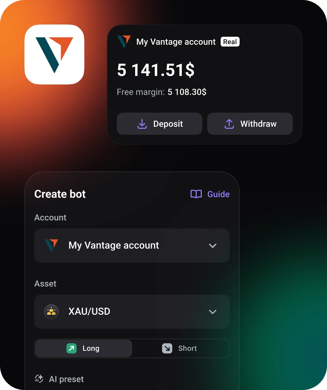 You can easily connect your Vantage demo account to Elirox, just like a live account. Demo accounts allow traders to evaluate strategy logic, execution behavior, and risk settings without using real funds. Please note that simulated trading environments may not fully reflect live market conditions, including liquidity, slippage, and execution dynamics.